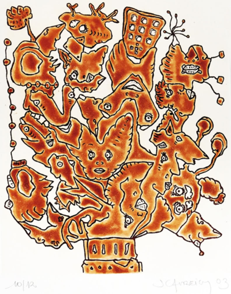 Peintre, dessinateur et graveur exposant depuis 1973, l’artiste puise son inspiration dans l’actualité, les maîtres anciens, l’art mineur et ses propres thèmes picturaux. Il en isole des détails créant des allusions figuratives ambiguës. Dès les années 1980, il enseigne la gravure dans plusieurs écoles d’art et travaille dans divers ateliers lyonnais et parisiens. L’artothèque présente un ensemble d’estampes, dont certaines réalisées avec des écrivains.