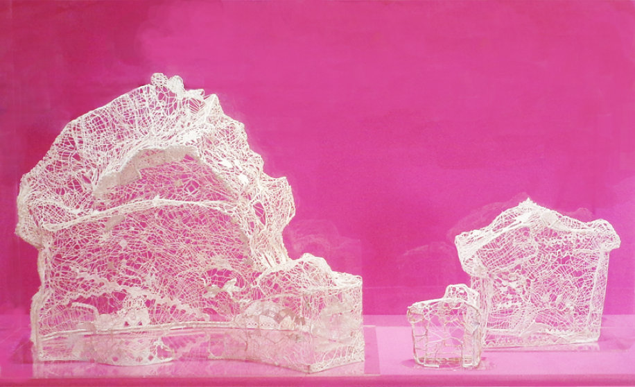 espaces inextricables. Ses créations parfois colorées, parfois diaphanes, sont un appel